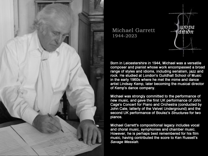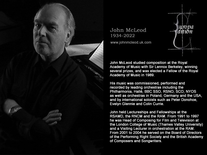 Over the past few years we have been saddened beyond words to learn of the passing of a number of cherished members of the Europa Edition family. John McLeod, Michael Garrett and Leon Coates were not merely composers whose work we published, they were dearly beloved friends and colleagues. Though they no longer walk beside us on this earth, their wonderful music lives on. We are proud to play a very small part in keeping their musical legacy alive.